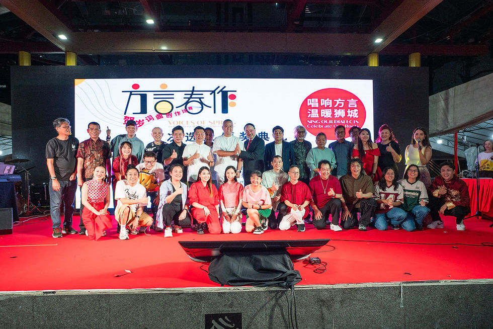 【新加坡讯】昨晚,年度文化盛事《方言春作》总决赛于牛车水广场隆重举行。福建、海南、潮州、客家、广东五大方言组别的15支顶尖队伍齐聚一堂,角逐“最佳方言新春歌曲”最高荣誉。所有入围作品皆为原创,以当代音乐语言诠释传统乡音,展现方言文化在新时代中的创造力与生命力。